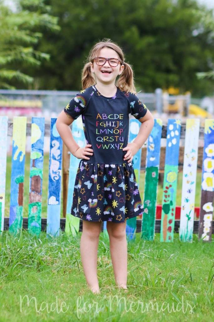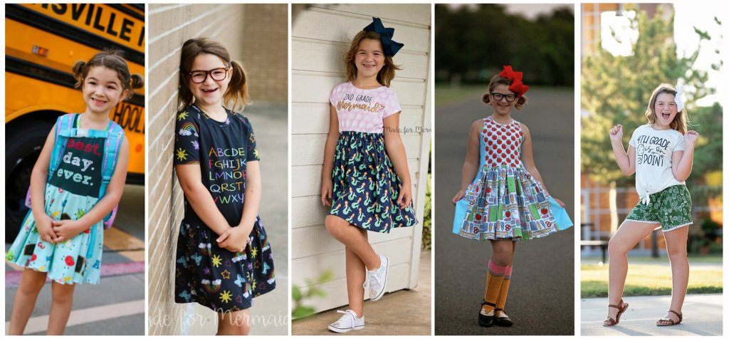 With two children of her own, Megan shared with us her favorite part of the new school year as a mom: creating a special first-day outfit! Letting her children join in on the creative process, she has each of them pick out their favorite fabrics and designs before sewing something to wow the class on the first day of school! Working on her JUKI machines like the HZL-DX7 sewing machine, a MO-1000 serger, and an MCS-1500 coverstitch machine, she creates outfits like the ones shown here!