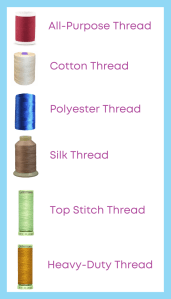 - Heavy-Duty Thread: a polyester thread, the heavy-duty thread is not suitable for most projects as it can break fabric, but it is a heavyweight and durable thread that can handle a lot of wear and tear for outdoor projects or interior furniture.