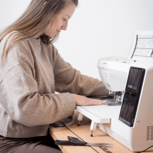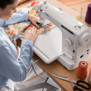 A machine with more quilting features and space is a great fit for a medium-sized area. Our DX Series measures about 18″ W x 9″ D x 12″ H, while the EE models are slightly larger at 20″ W x 10″ D x 12″ H. These machines work well on a 48″ wide sewing table, giving you more space to maneuver fabric while quilting. With additional workspace, you can set up a small pressing station nearby for quick seam pressing or create an organized storage system for fabric and accessories! Make sure to think about lighting as well; a well-lit craft room with both natural and project lighting ensures a better view of your stitching while working on detailed projects.