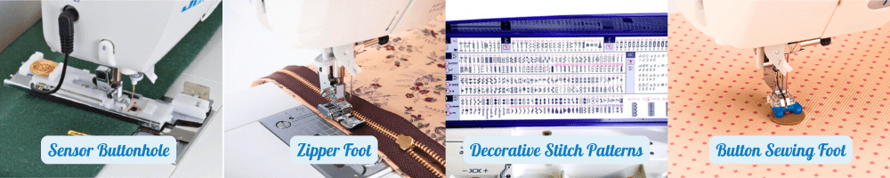 While these machines come packed with features, there’s one accessory that’s not included that we have to mention: the button sewing foot! Available as an attachment for all the above models, this accessory streamlines the process of securely attaching buttons by machine. Instead of hand-sewing each button, you can achieve strong, consistent results quickly and with minimal effort.