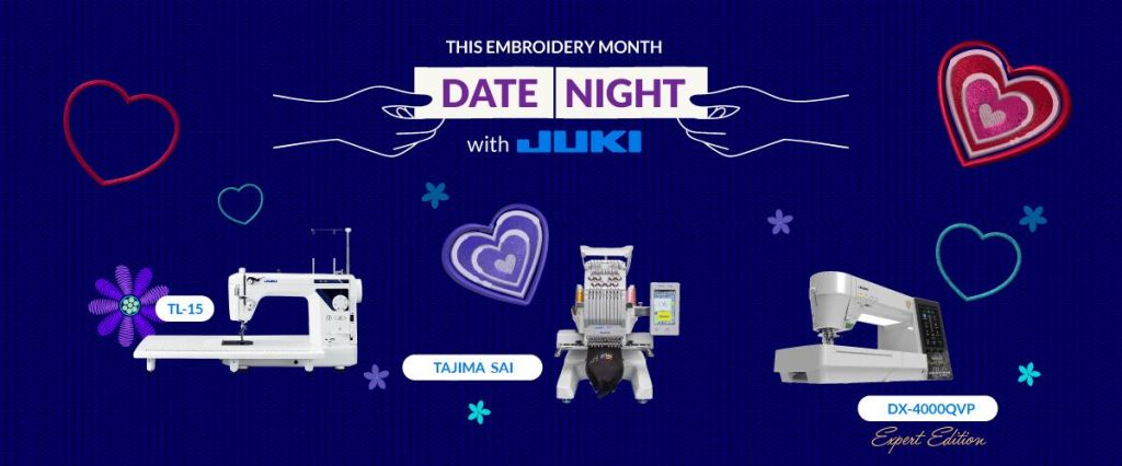 This Valentine’s Day, we’re offering a special Date Night with JUKI promotion featuring three of our most sought-after sewing machines. These machines are perfect for creating custom gifts, home décor, clothing, or anything else that shows your creativity and love!