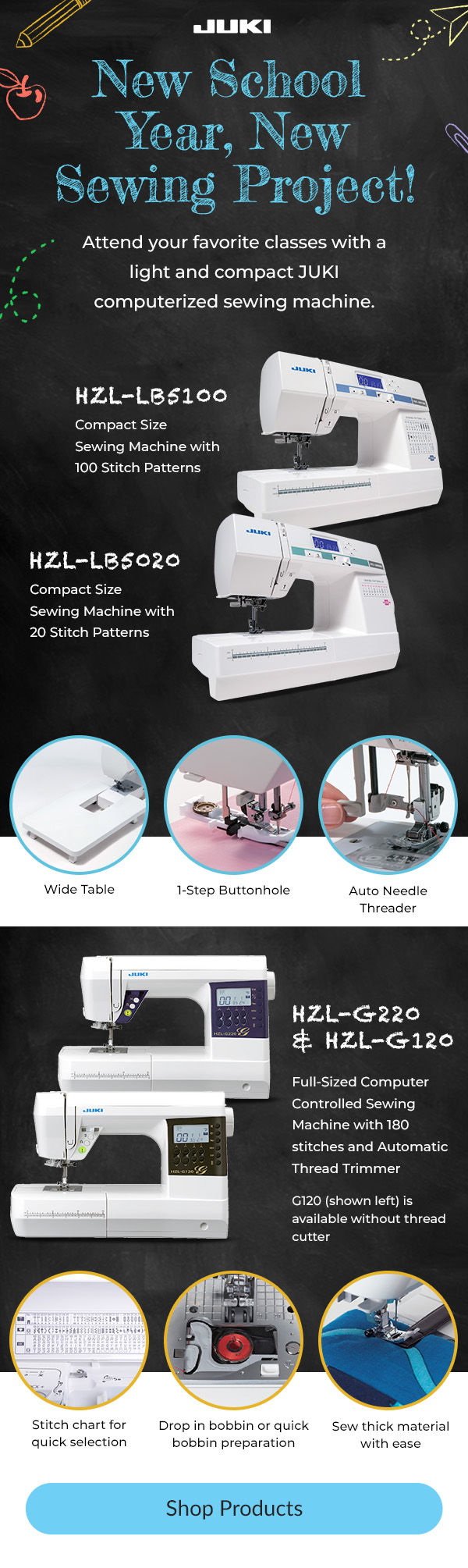 Get ready for your next sewing class and retreat with JUKI! Compact and easy to travel with, our HZL-LB Series and HZL-G series are the perfect companions for your next outing.