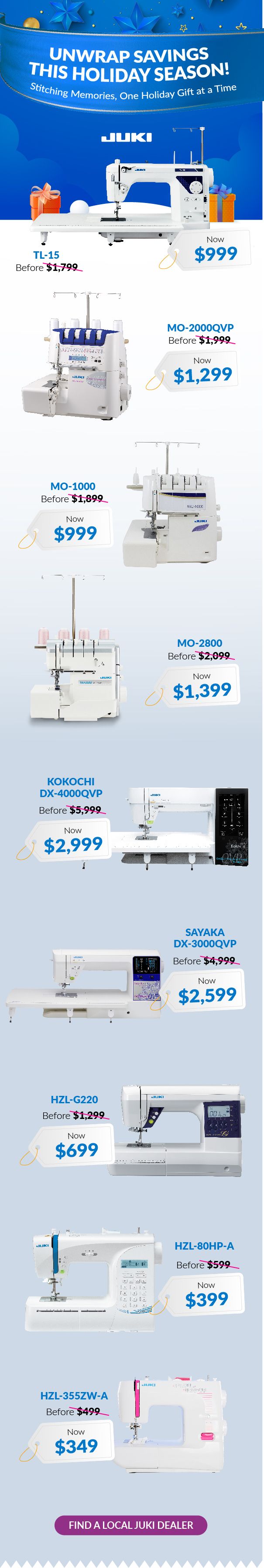 Check out your nearest JUKI dealer here to learn more about JUKI’s holiday specials and how you can find your dream machine!
