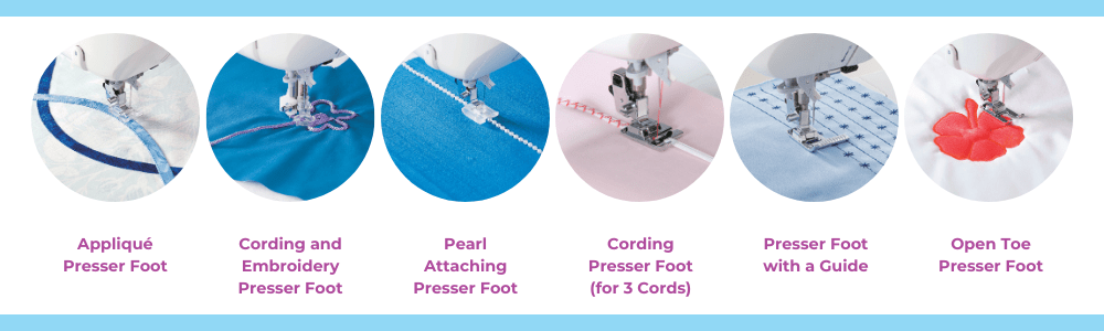 The JUKI Heavy User Kit offers a comprehensive range of presser feet that elevate your sewing projects to professional standards. Each presser foot serves a specific purpose, whether it’s attaching buttons, creating invisible zippers, achieving rolled hems, binding edges, guiding precise stitching, adding decorative cording, or incorporating embroidery. By harnessing the capabilities of these presser feet, you can explore endless creative possibilities and achieve impeccable results in your sewing endeavors. So, equip your sewing machine with the JUKI Heavy User Kit and unlock the potential to create stunning and professional-looking projects!