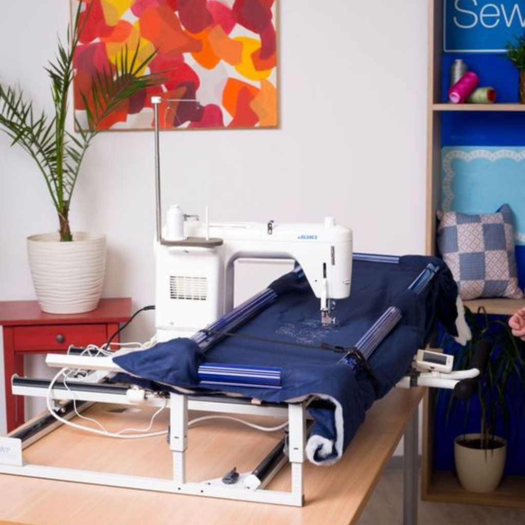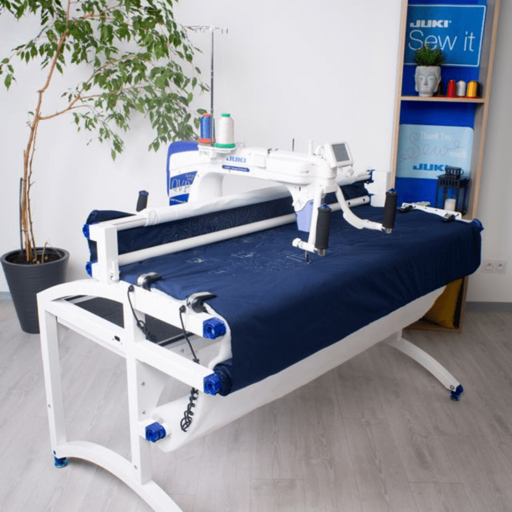 Quilting is a creative journey, and the right equipment can make it smoother, more precise, and more fun. At JUKI, we offer two ways to bring your quilting visions to life: the Tabletop Fabric Frame paired with a JUKI machine and the Miyabi J-350QVP Long Arm. Both systems allow you to expand your quilting capabilities, tackle larger projects, and create professional-quality stitches, all from the comfort of your sewing space.